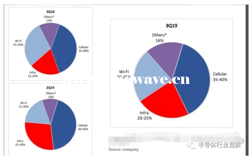 2018年的時(shí)候,該晶圓廠的WIFI PA占比為25-30%,比手機(jī)PA只少10個(gè)百分比。手機(jī)上采用的是砷化鎵WIFI PA,蘋果、三星和華為等品牌都是。路由器上采用的更是砷化鎵WIFI PA。